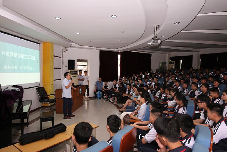2019年9月2日下午,我校计算机与网络专业部的新生交流会,在香洲校区校本部三楼阶梯教室举行。
